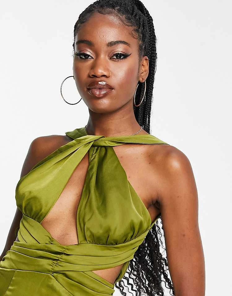 In The Style X Yasmin Devonport Exclusive Twist Halterneck Cut Out Midi Dress In Lime For Women